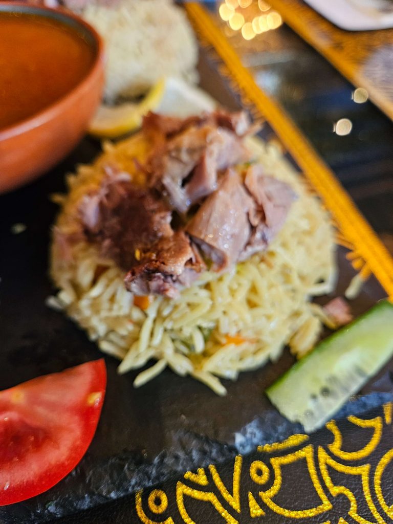 Legende Orient Platte, Mandi-Reis mit Huhn, Kibbeh, Teller Kebab, Lammkotelett